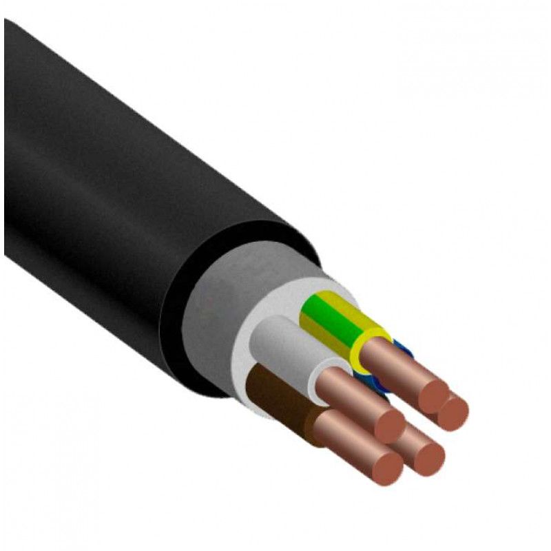 Конструкция Токопроводящая жила — медная, однопроволочная Число жил: 5. Изоляция — из ПВХ композиции пониженной пожароопасности. Изолированные жилы многожильных кабелей имеют отличительную расцветку. Изоляция жил заземления выполняется двухцветной (зелено-желтой), нулевых жил — синего цвета. Расположение жил в кабеле — изолированные жилы 2-5 жильных кабелей скручены в сердечник. Внутренняя оболочка — из ПВХ композиции пониженной пожароопасности. Накладывается на сердечник с одновременным заполнением наружных промежутков между жилами. Наружная оболочка — из ПВХ композиции пониженной пожароопасности.